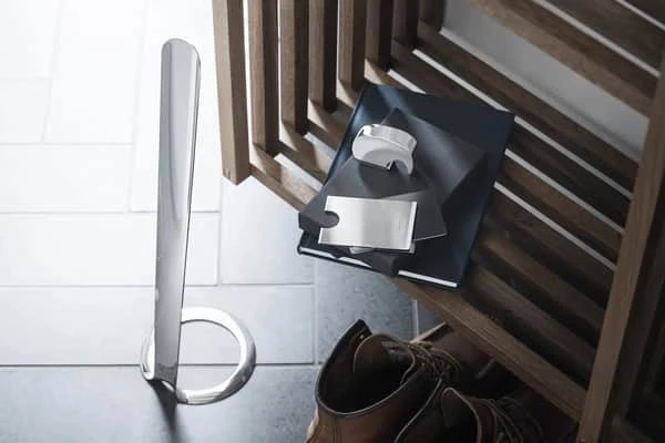 Hvor tit står man ikke lige og mangler et skohorn lige ved hånden? Da de ofte ikke er særlig pæne, pakkes de væk i skabe og skuffer. Men det behøver du ikke længere. Georg Jensen har nemlig designet et dekorativt og elegant skohorn. Med dens slanke design, står den på gulvet som en dekorativt element i entreen.