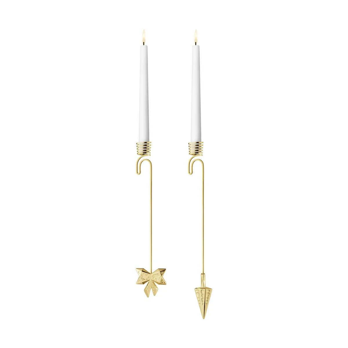 Dette sæt består af de to lysholdere til juletræet fra 2022, der er designet af Sanne Lund Traberg med inspiration fra hendes barndoms juleminder som en del af årets julekollektion. Lysholderne er belagt med 18 kt. guld og er udsmykket med gyldne ornamenter formet som en sløjfe og et kræmmerhus. De passer til almindelige juletræslys.