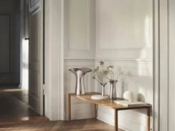 Denne charmerende hjerteformede æske fra Georg Jensen er den ideelle gave til mors dag eller som fødselsdagsgave. Den er perfekt til opbevaring af smykker, småsager og dimser. Hjerteæsken er udført i poleret rustfrit stål, og den elegante udformning giver også mulighed for at placere armbånd og andre smykker ovenpå låget, når det er lukket. Indersiden af æsken er belagt med silikone, som beskytter overfladen mod ridser. Silikone indsatsen tåler opvaskemaskine, men er ikke egnet til opbevaring af fødevarer.
