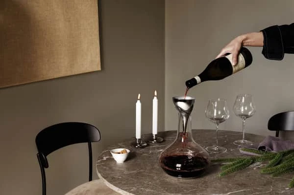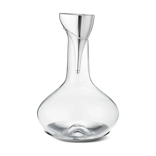 Forbedr din vinoplevelse med Sky vintragten fra Georg Jensen. Tragten hjælper til at ilte din vin ved at hælde vinen jævnt og nænsomt langs karaflens inderside. Alt imens filteret sikrer, at bundfald ikke ender i karaflen, mens du skænker. En sand nydelse til dig, der elsker en god vin.