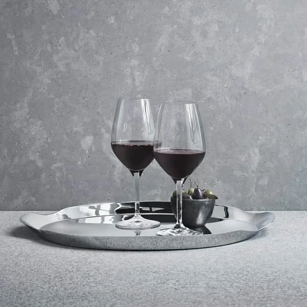 Når der skal vin og snacks på bordet, giver Wine & Bar serveringsbakken fra Georg Jensen en elegant servering.